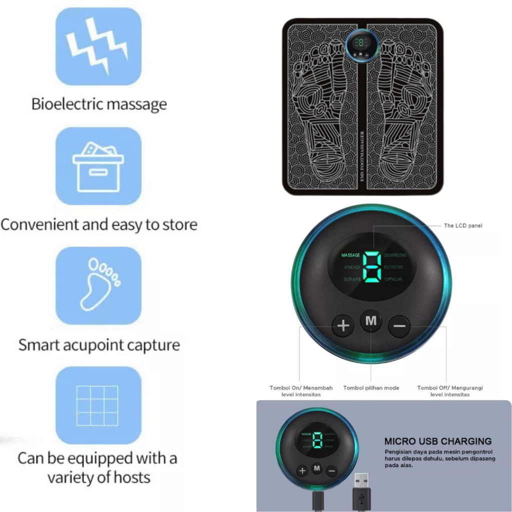 Bio Electric meningkatkan sirkulasi darah dengan mongontraksikan otot-otot kaki dan tungkai. Membantu Neotrapi kaki, kelenturan, plantar fasciitis, dan pembengkakkan kaki.