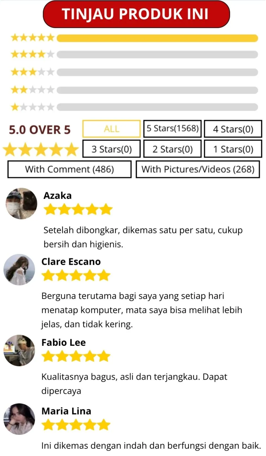 Terbuat dari bahan ALAMI, 100% HERBAL, terjamin aman untuk mata Anda!